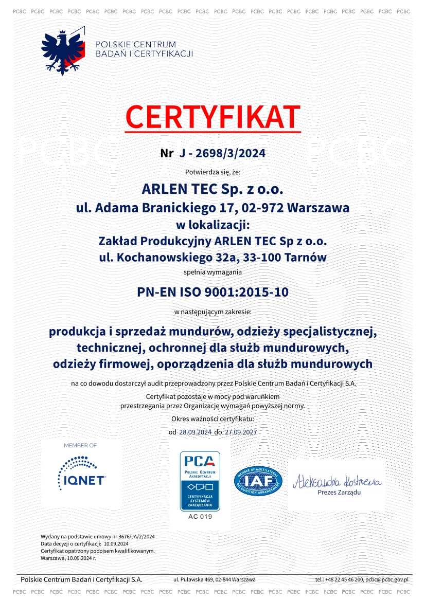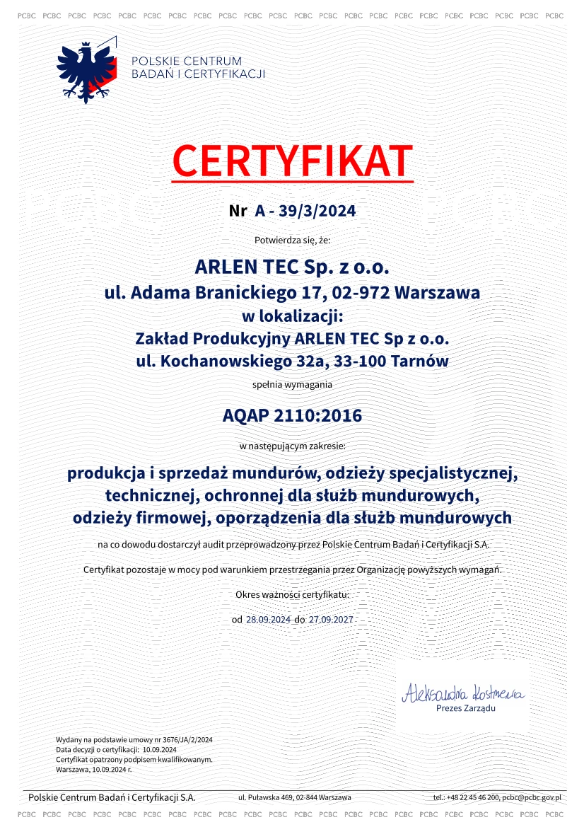 Odzież wodoodporna, antystatyczna oraz trudnopalna, wykonana z surowców od wiodących europejskich dostawców, corocznie dostarczana jest na potrzeby służb mundurowych i sił specjalnych wielu armii europejskich.